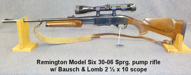 Redfield 3 x 9 scope, Remington mod. Six 30-06 Sprg. pump rifle w/ Bausch & Lomb