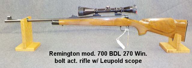 scope, Remington mod. 700 BDL 270 Win. bolt act. rifle w/ Leupold scope,