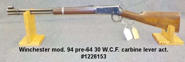 cal. bolt act. rifle w/ finger groove stock (lk. new), Winchester mod. 94 pre-64
