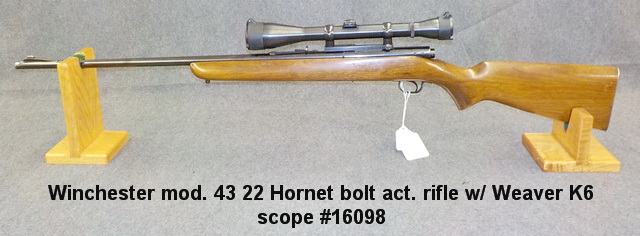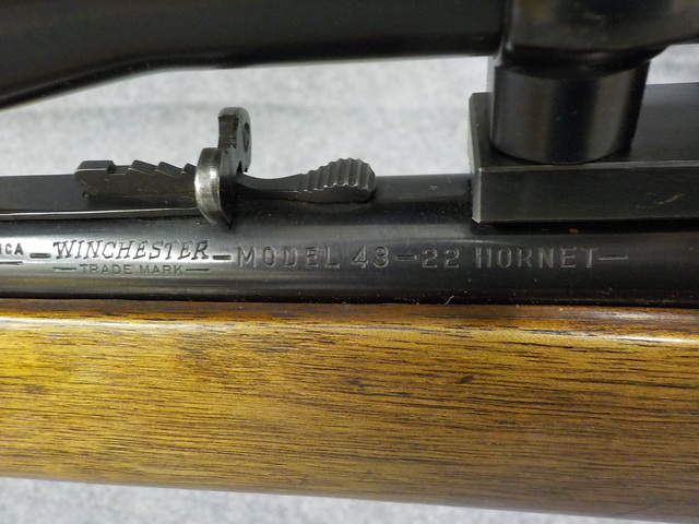 W.C.F. carbine lever act. #1226153, Winchester mod. 43 22 Hornet bolt act. rifle