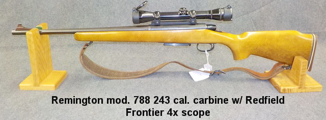 2 ½ x 10 scope, Remington mod. 788 243 cal. carbine w/ Redfield Frontier 4x