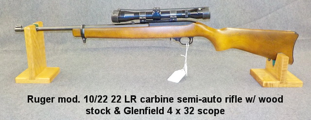 22 LR carbine semi-auto rifle w/ wood stock & Glenfield 4 x 32 scope, Ruger
