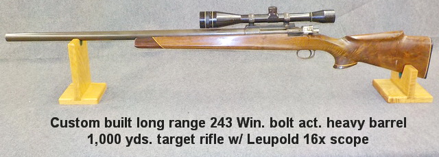 act. heavy barrel 1,000 yds. target rifle w/ Leupold 16x scope, Ruger Ranch