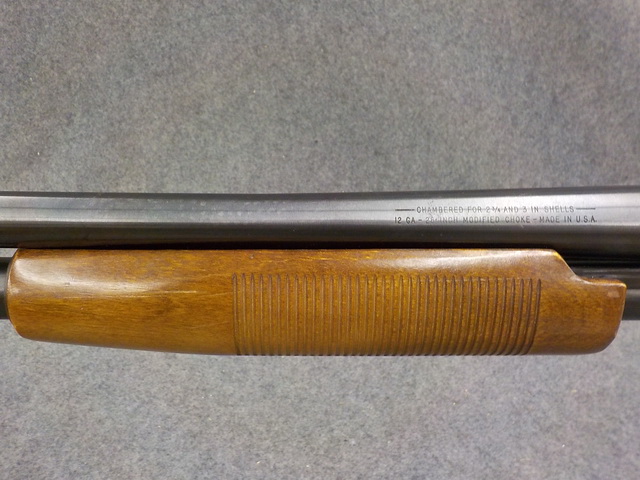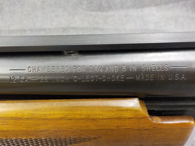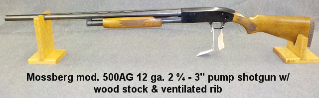 12 ga. 2 ¾ - 3” pump shotgun w/ wood stock & ventilated rib, Mossberg mod. 500