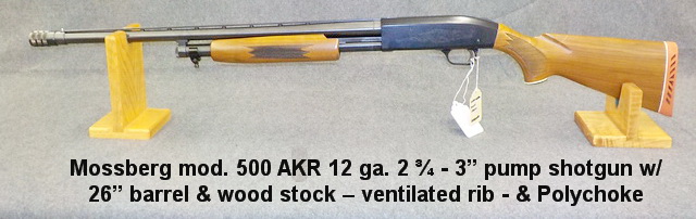 AKR 12 ga. 2 ¾ - 3” pump shotgun w/ 26” barrel & wood stock – ventilated rib - &