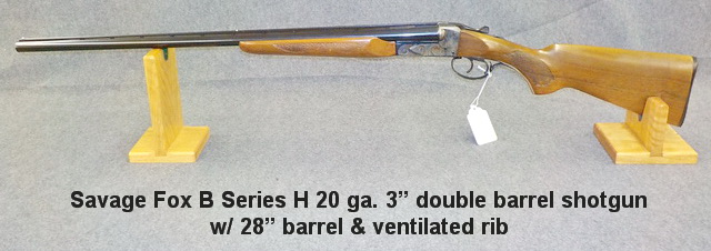 scope, Savage Fox B Series H 20 ga. 3” double barrel shotgun w/ 28” barrel &