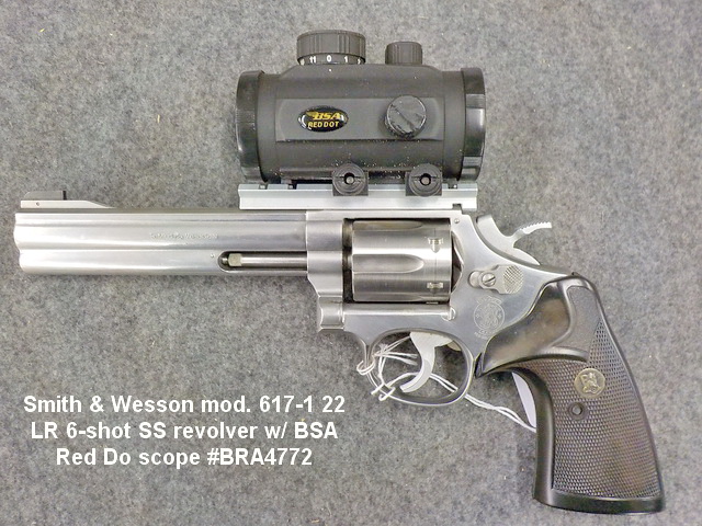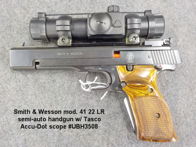 revolver w/ Tasco Red Dot scope #BRC8642, Smith & Wesson mod. 41 22 LR semi-auto