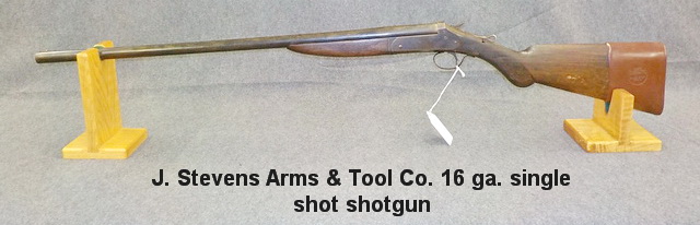 forearm), J. Stevens Arms & Tool Co. 16 ga. single shot shotgun, JC Higgins mod.