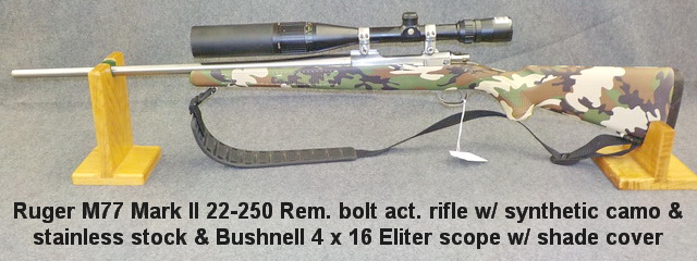 (NIB), Ruger M77 Mark II 22-250 Rem. bolt act. rifle w/ synthetic camo &