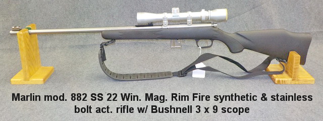 Win. Mag. Rim Fire synthetic & stainless bolt act. rifle w/ Bushnell 3 x 9