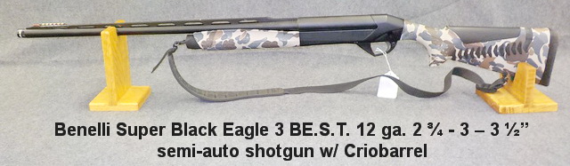semi-auto shotgun w/ Criobarrel, Benelli Super Black Eagle 12 ga. 2 ¾ - 3 – 3 ½”