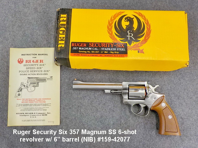 w/ 6” barrel (NIB) #159-42077, Ruger Security Six stainless steel 357 Magnum