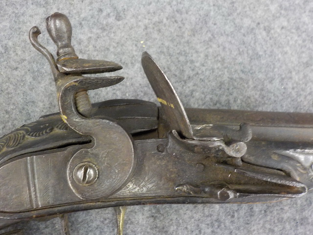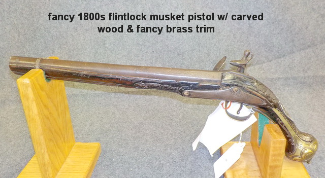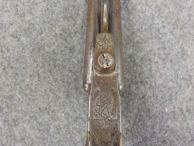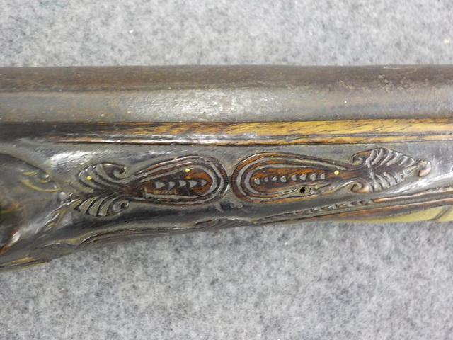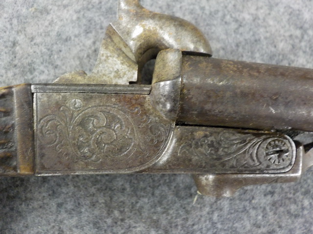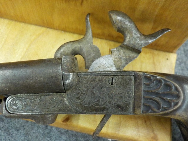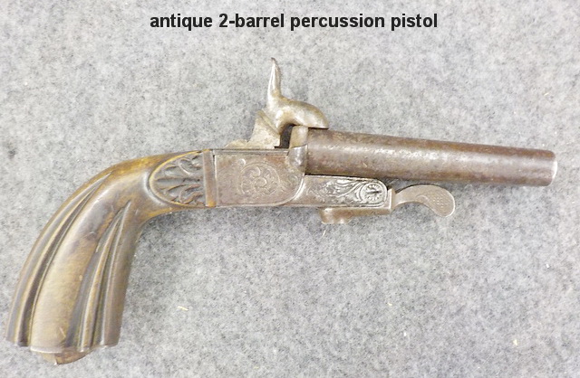 pepperbox, antique 2-barrel percussion pistol, fancy 1800s flintlock musket