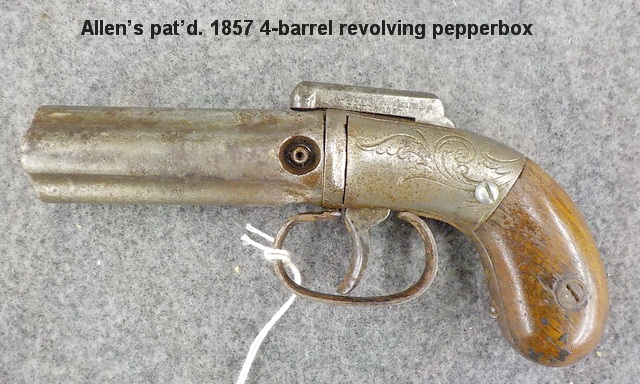 SS revolver w/ BSA Red Do scope #BRA4772, Allen’s pat’d. 1857 4-barrel revolving