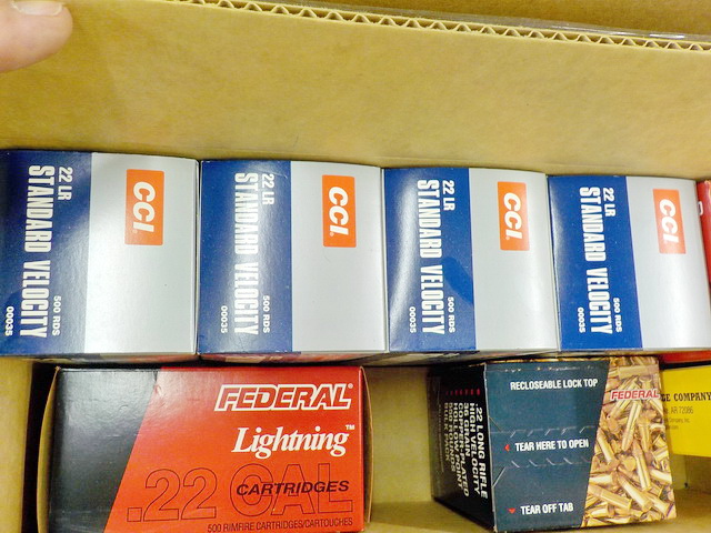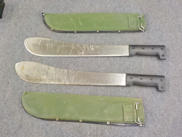 bricks of 22 LR, Shooting Chrony in box, (2) machetes, Hibben triple throwing