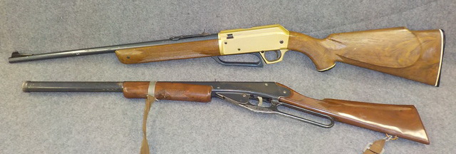 mod. 98 lever act. BB gun, Crosman mod. 38C Combat Pellgun revolver w/ orig.