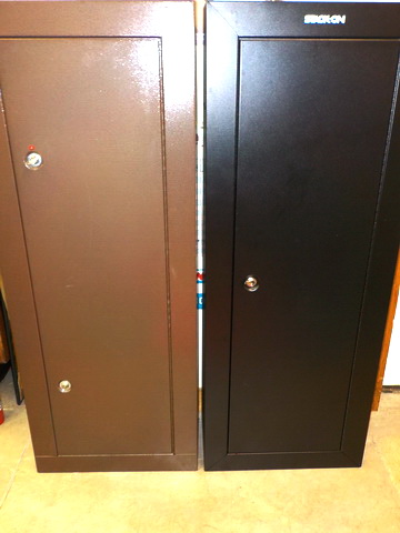knife set, gun magazines, nice gun sleeves, (2) Stack-On metal gun cabinets… No