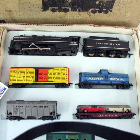 Garage, Marx All State HO Hudson Set, Tyco Dixie Belle Pass. Set, Marx Cannon,