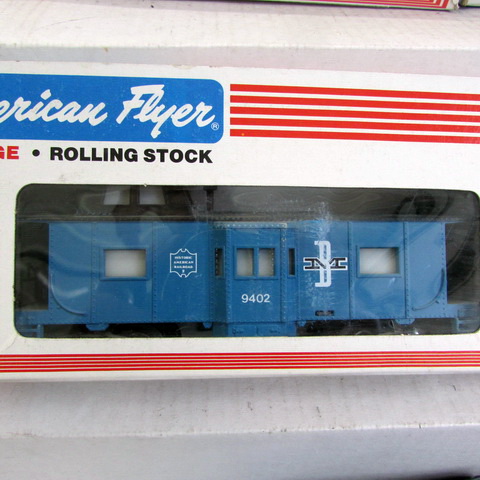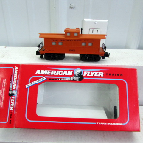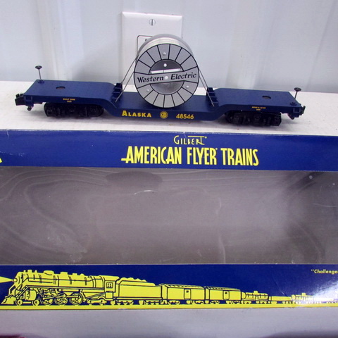 Alaska Depressed Flatcar, American Flyer Box Car, American Flyer Caboose w/box,
