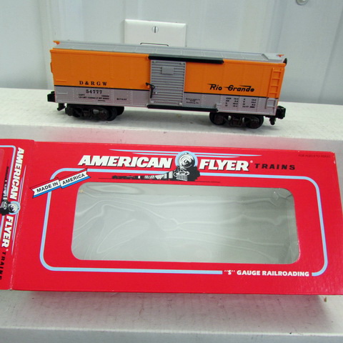 American Flyer Mo & Joe Lumbar Car, American Flyer Rio Grande box car, American