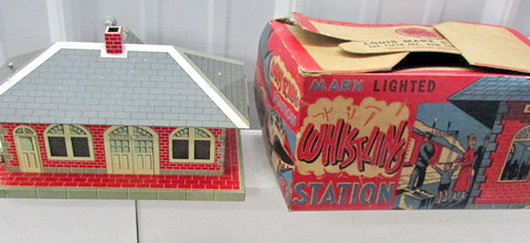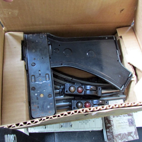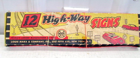Marx Caterpiller, Marx Highway signs in one box, Marx Lighted Whistle Station
