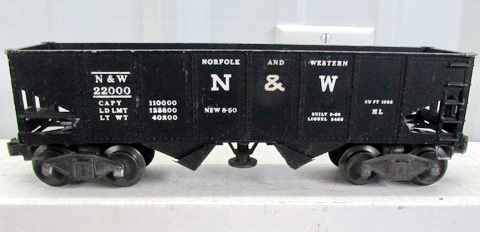 Dump Car, Lionel 3451 Automatic Log Dump, Lionel 3456 N&W Hopper, Lionel 3459