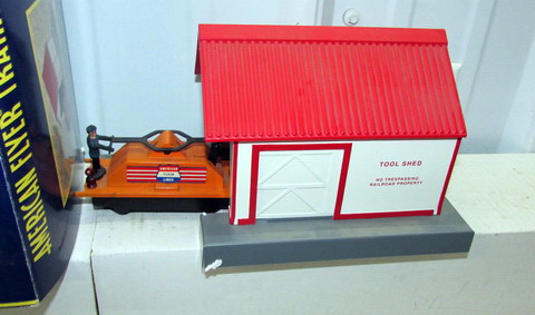 Flyer Santa-Fe 360-361, American Flyer Tank Car, American Flyer Tool Shed,