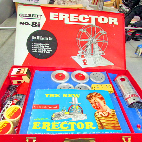 Chein Ferris Wheel, Erector Set Wood Box, Gilbert Erector No. 8 1/2, Gilbert