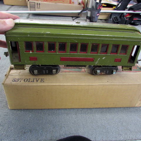 Set, Lionel 337 Olive Passenger Car, Lionel 6468 B&O Automobile Box Care, Lionel