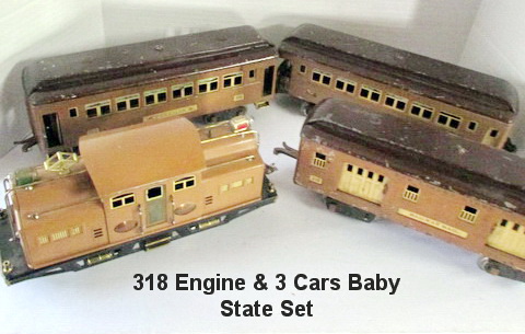 & Tender, Lionel 318 Engine & 3 Cars Baby State Set, Lionel Standard 337, 337,