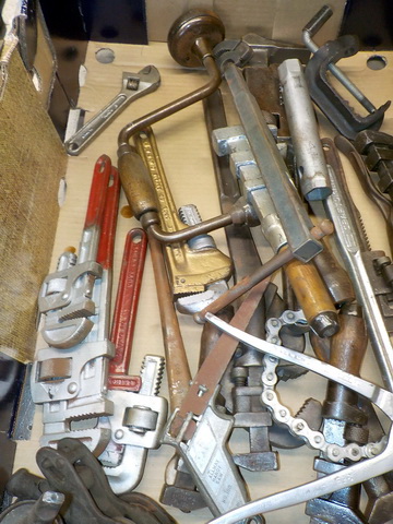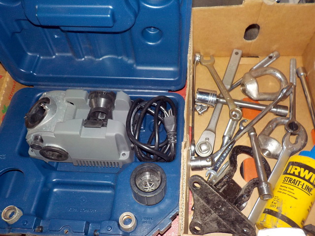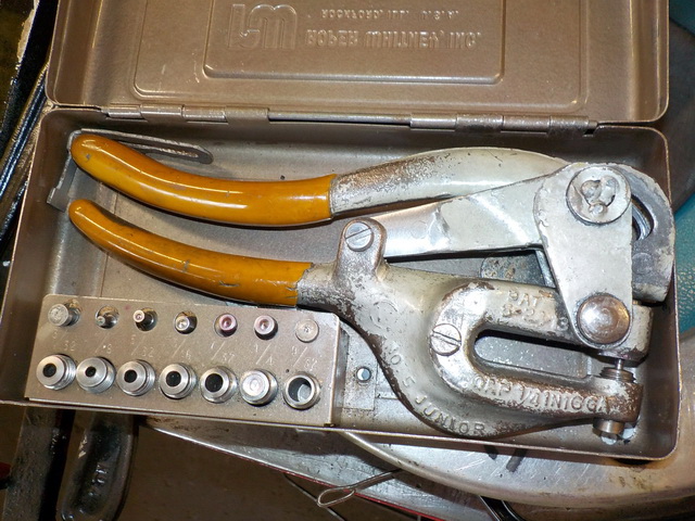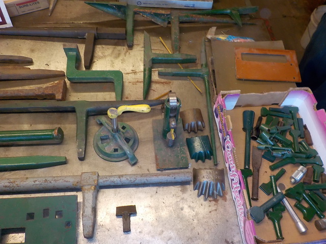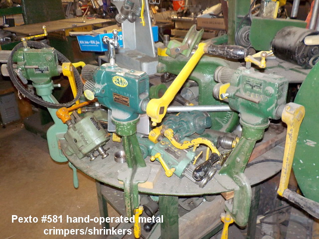 floor model drill press, Pexto #581 hand-operated metal crimpers/shrinkers,