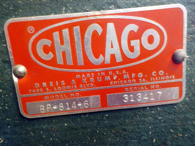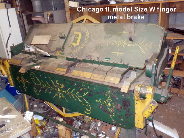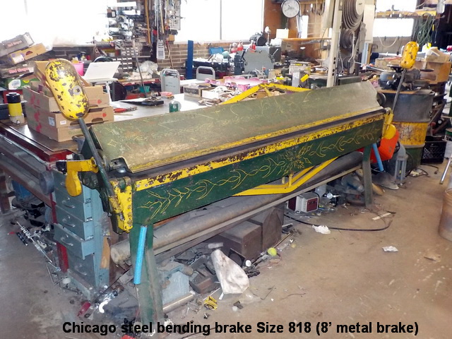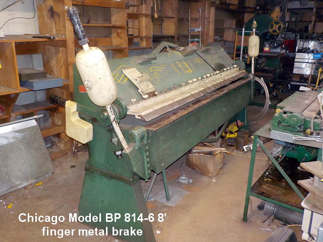 brake, Chicago Model BP 814-6 8’ finger metal brake, Pexto Model 418-E forming