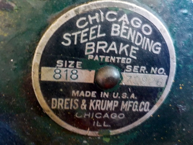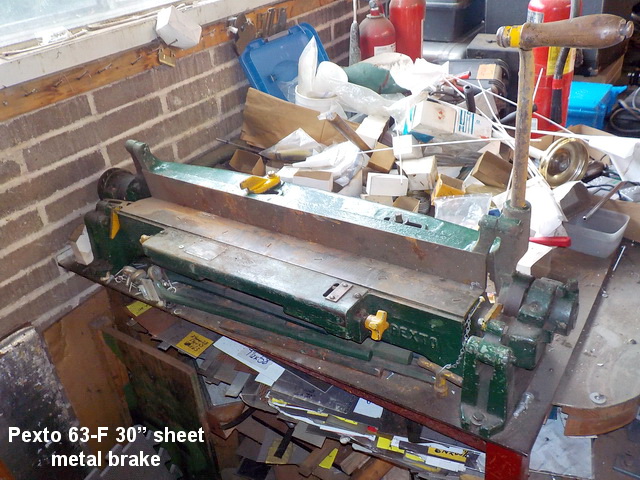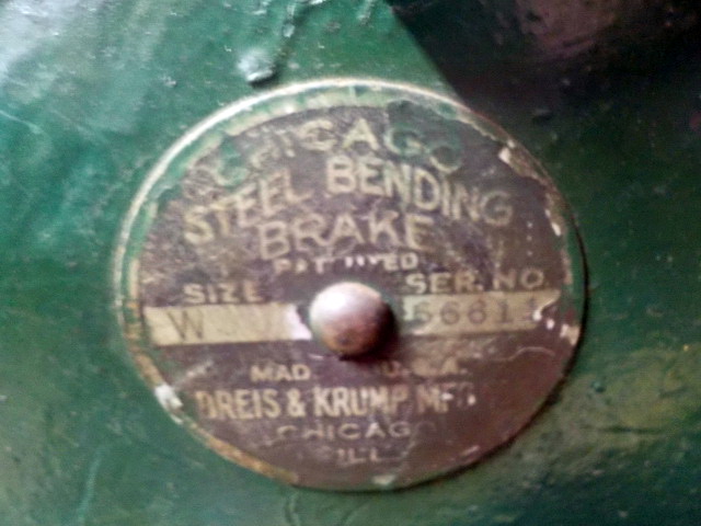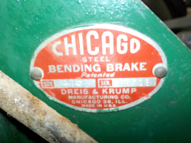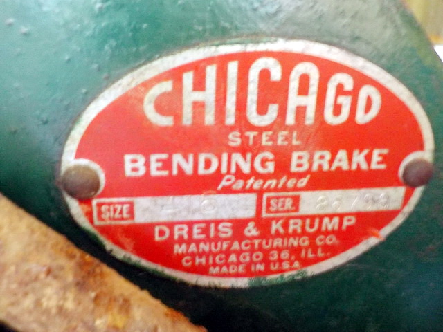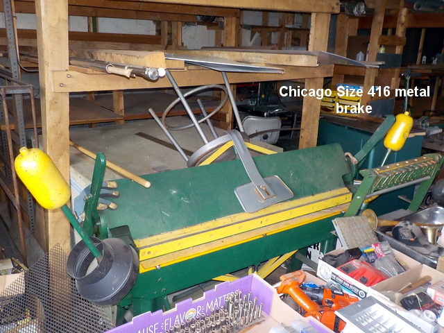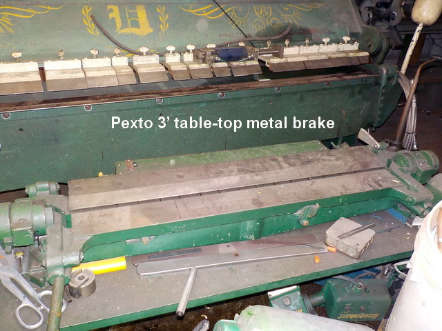 sheet metal brake, Pexto 3’ table-top metal brake, Chicago Size 416 metal brake,