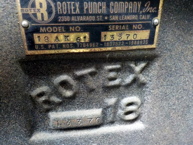 No. 2, Rotex Model 18AK61 #18 punch, Chicago fl. model Size W finger metal