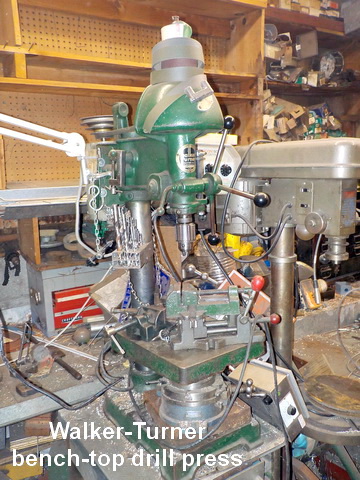 lathe, Walker-Turner bench-top drill press, Packard Precision Model 1600-HDF
