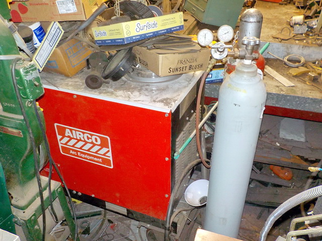 press, Solar 20amp plasma cutter, Airco DIP-PAC200 wire feed welder, Ridgid 400