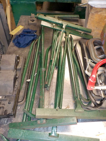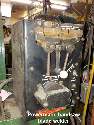 sander, Powermatic bandsaw blade welder, Lockdown B2516 bender, Pexto
