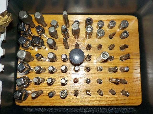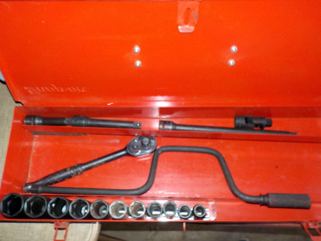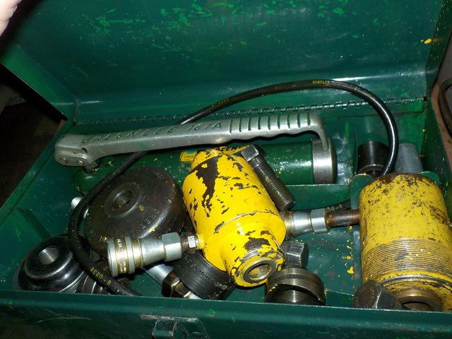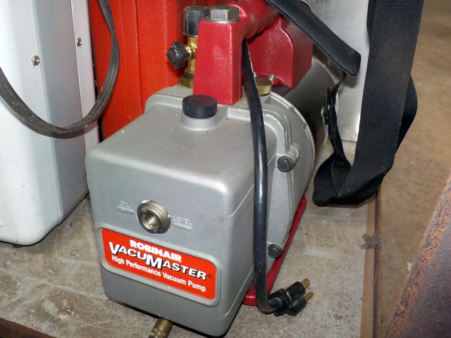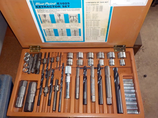 ½” drill driver in case, Robin Air vacuum pump, Blue-Point E1025 extractor set,