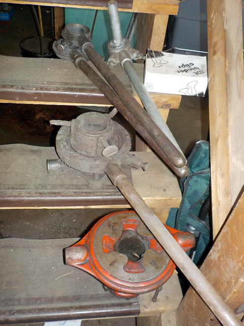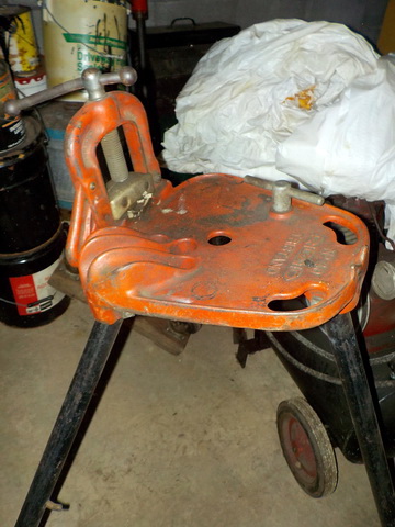 pipe threader, pipe stand w/ vise, assorted Ridgid pipe threaders, Milwaukee M18