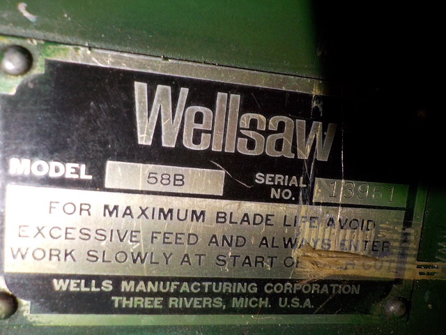 model arbor press, Wellsaw Model 58B metal cutting bandsaw, Stark No. 4 metal