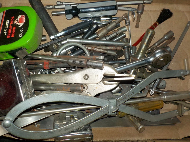 meters, Makita 14V cordless drill set, lots of hand tools, Fairbanks-Morris