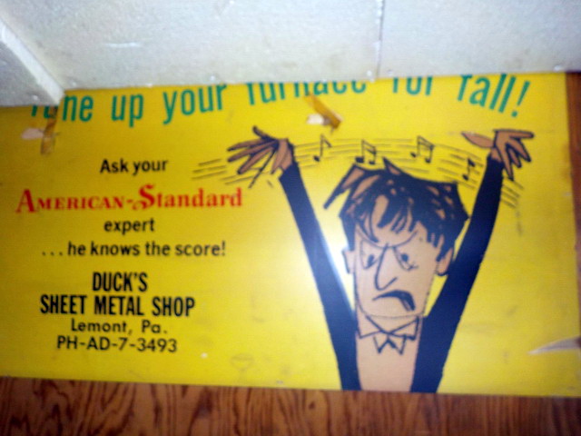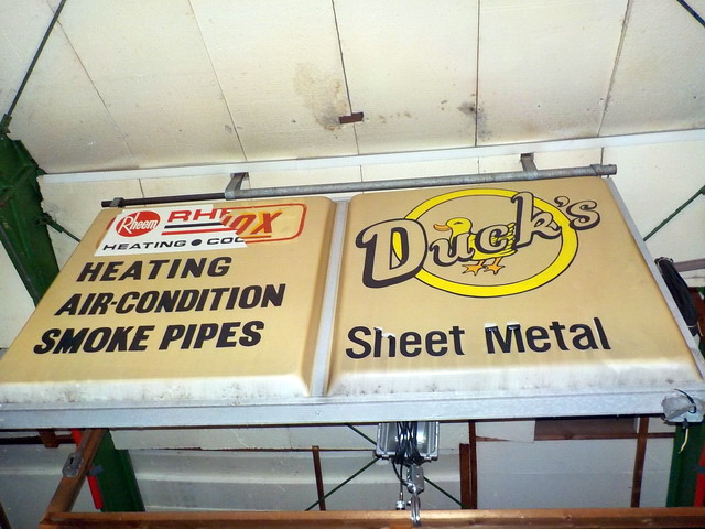 Sheet Metal” signs, new galvanized ductwork for furnaces…