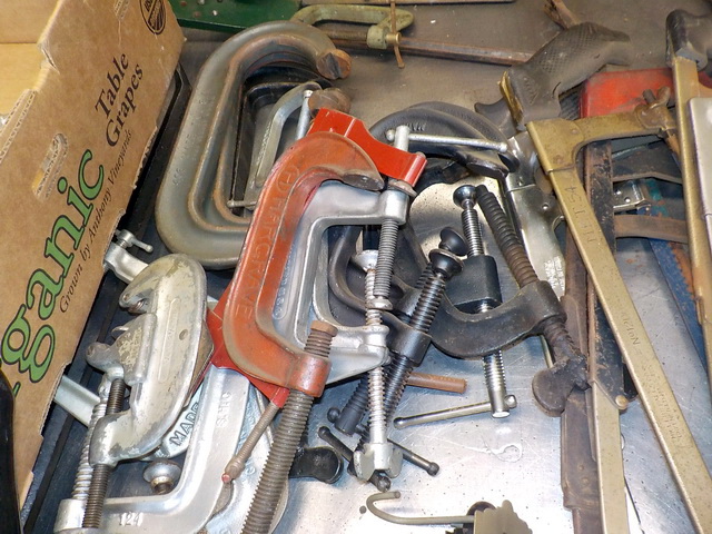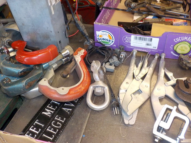 welding clamps, shop carts, many pieces of assorted scrap metal cut offs, lots