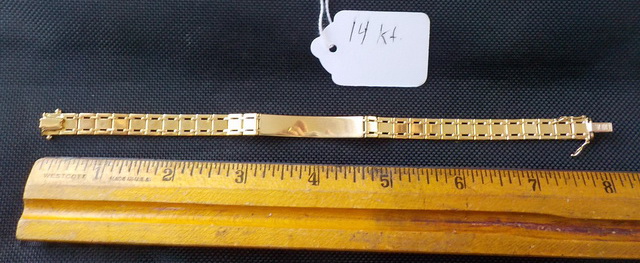 18 kt. gold men’s bracelet (over 1,000 grains), 2004 1/20 oz. Panda gold coin,