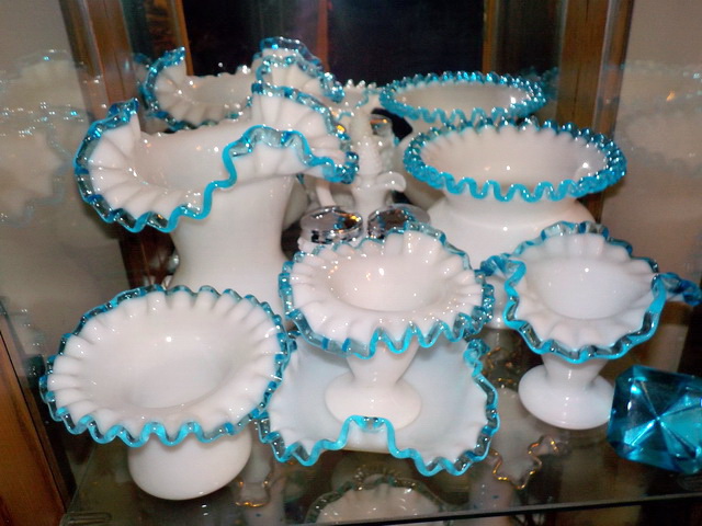 pcs. of Fenton Glass incl. Aqua Crest – Ebony Crest - Flame Crest – Cranberry