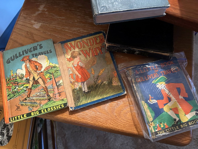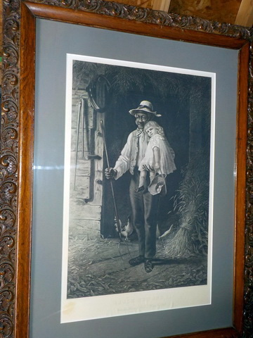 Sambo books - & vintage prints…..Nice antique oak curved glass