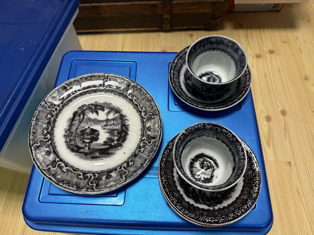 handleless cups & saucers…..American Eagle, Morgan, & Peace silver dollars,