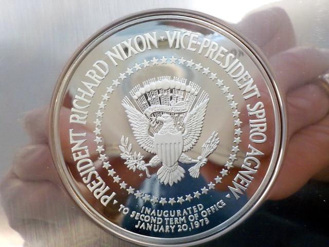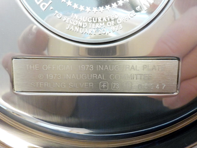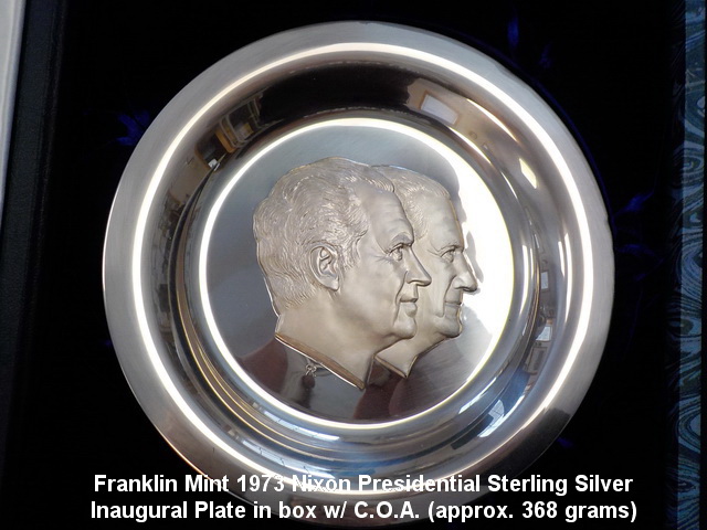 Franklin Mint 1973 Nixon Presidential Sterling Silver Inaugural Plate in box w/