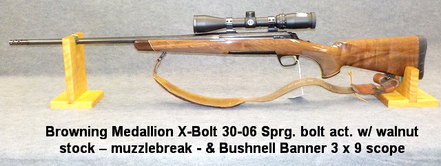 30-06 cal. w/ scope, Browning Medallion X-Bolt 30-06 Sprg. bolt act. w/ walnut
