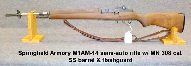 act. carbine, Cardone 6.5 Carcano bolt act. rifle, Springfield Armory M1AM-14